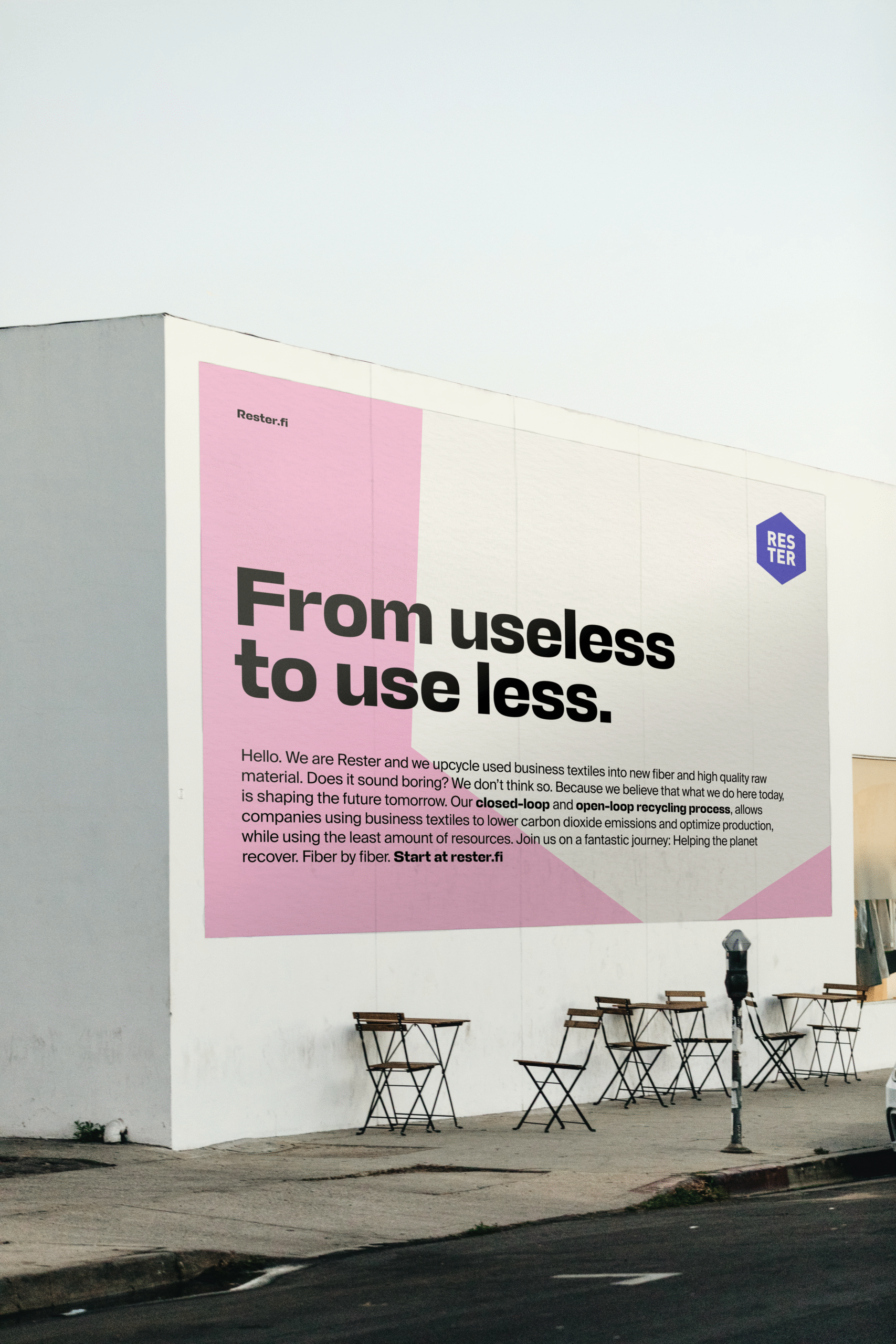 As a pioneering Nordic scale-up, Rester risked being seen merely as a technical solution provider in a crowded sustainability space. To differentiate, the brand had to embody both credibility and ambition – a company with the courage to reimagine the textile economy while being a reliable partner for the largest players.