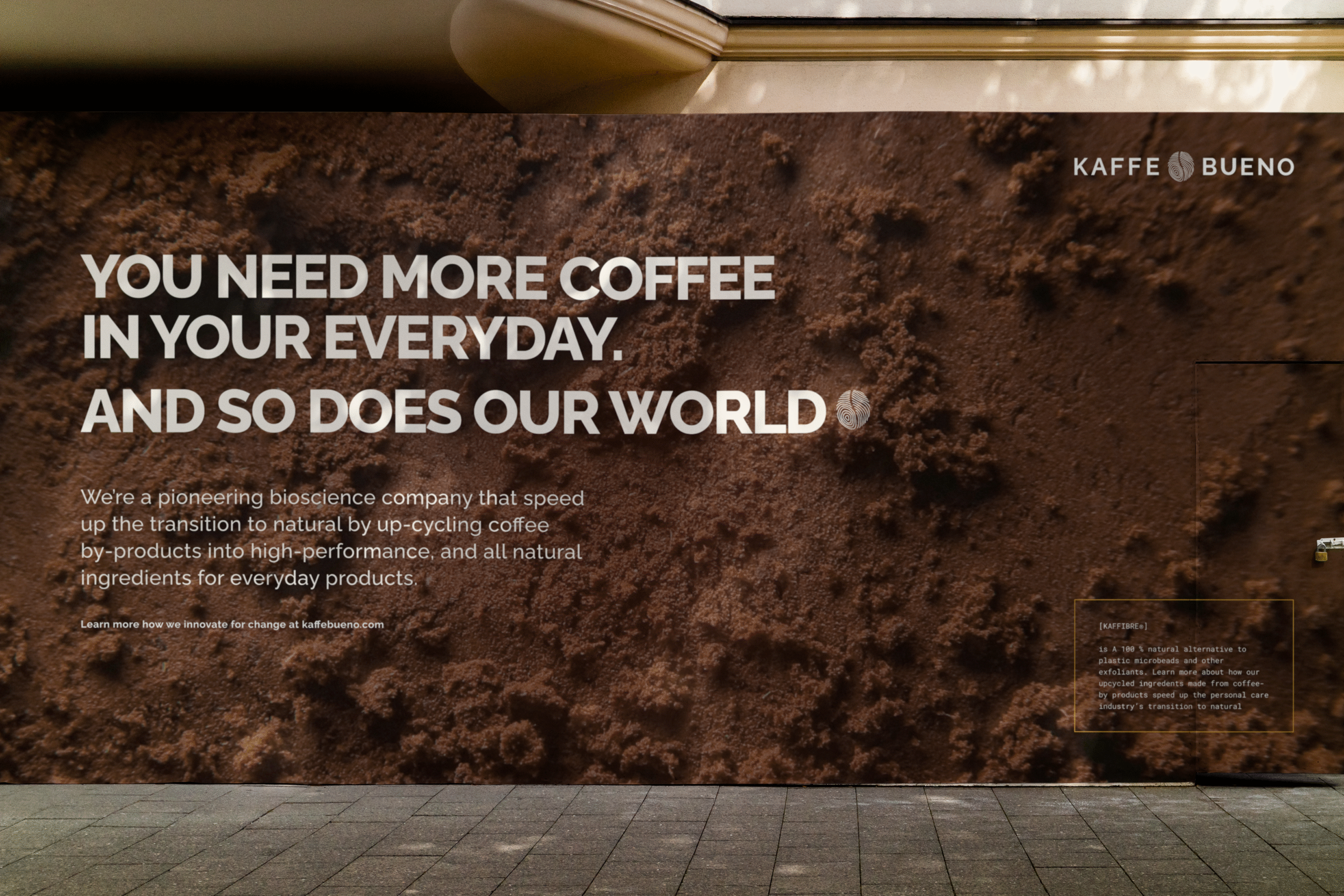 Kaffe Bueno is a pioneering brand and a forerunner within sustainable biotech. They upcycle natural and sustainable ingredients for a wide range of everyday products, across a wide range of industries, from your old coffee waste. Because when you brew a cup of coffee, only one percent of the potential is being used, which makes coffee one of the world’s most underutilised natural resources. And we can’t have it like that.